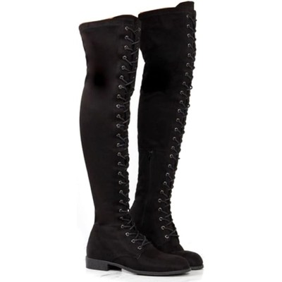 Women's Sexy Thigh High Heels Cross Lace Up Over Knee Platform Boots Unisex Round Head Plus Size