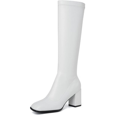 Women's Knee High Boots Square Toe Gogo Boots Long Chunky Heel Boots Fashion Tall Go Go Boots For Women