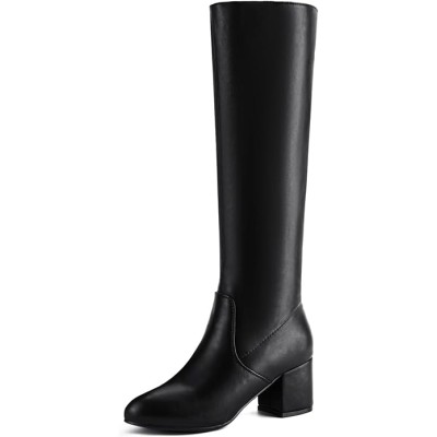 Knee High Boots for Women Block Chunky Heel Boots with Side Zipper