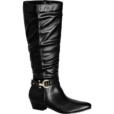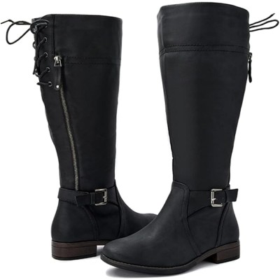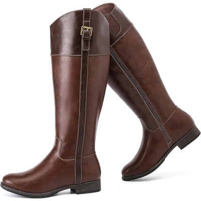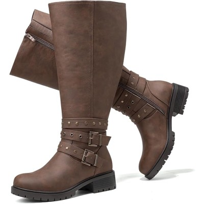 Dark Red Leather Knee High Boots for Women Platform Chunky Block Heeled Burgundy Boots