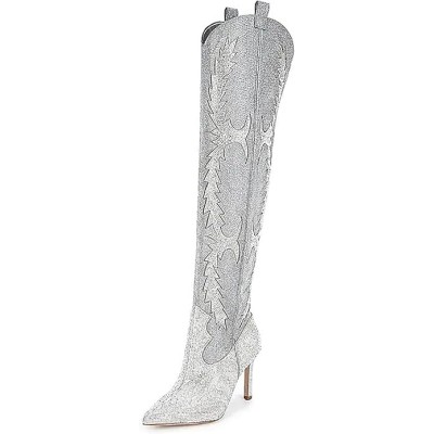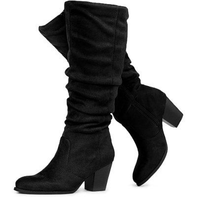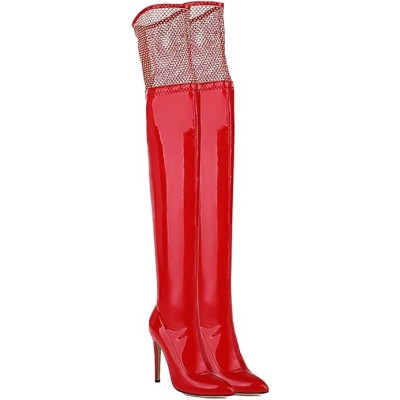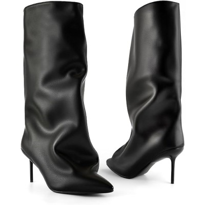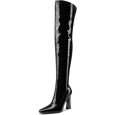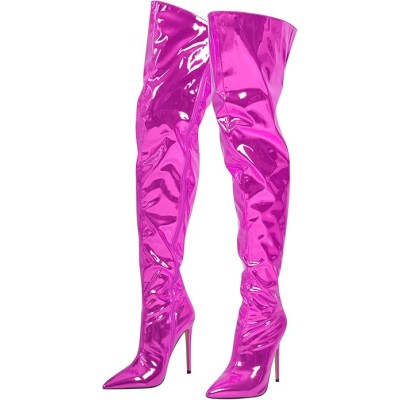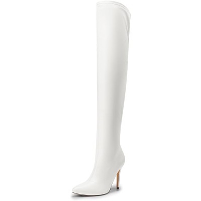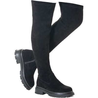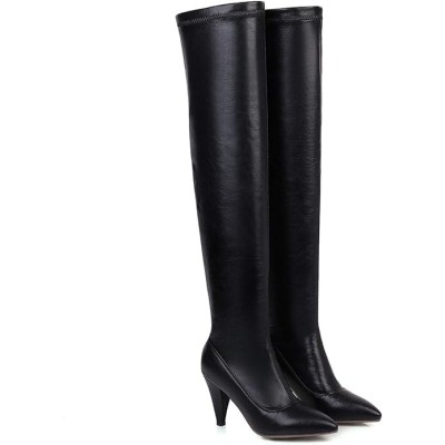 Thigh High Stiletto Boots Women Pointed Toe Stretch Zip Kitten Heel Suede Over Knee Boots