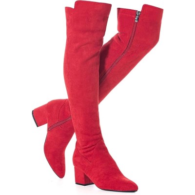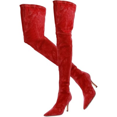 Sexy High Heels Thigh High Stiletto Boots Women Pointed Toe Stretch Zip Kitten Heel Suede Over Knee Boots 4-11 M US