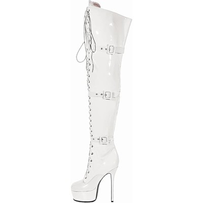 Women's Sexy Thigh High Heels Cross Lace Up Over Knee Platform Boots Unisex Round Head Plus Size