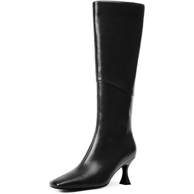 Knee High Boots Women Square Toe Tall Boots Kitten Heel Long Boots Side Zipper Dress Fashion Boots