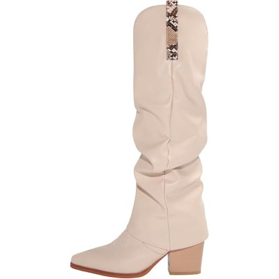Western Cowboy Boots Slouchy Chunky Heel Pull-on Knee High Boot Cowgirl Combat Fold Over Boot