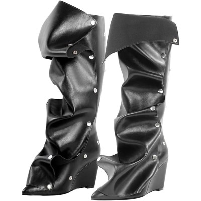 Women's Wedge Heel Knee High Slouchy Foldover Buttons Boots