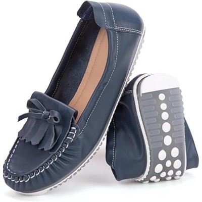 Women's Genuine Leather Loafers – Slip-Resistant Sole, Breathable & Lightweight Flats for Work, Travel, and Casual Wear