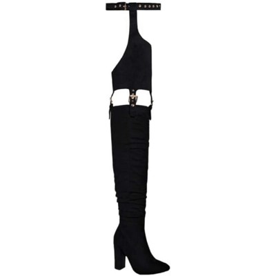 Women's Fashion Over The Knee Belted Pointed Toe Long Boots Sexy Buckle Strap Side Zipper Block Heels Thigh High Boots