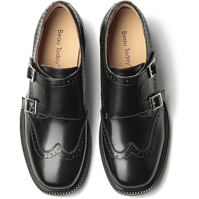 Loafers for Women, Monk Strap Brogue Leather Loafer Shoes for Women, Comfortable Square Toe Loafer Flats, Business Casual