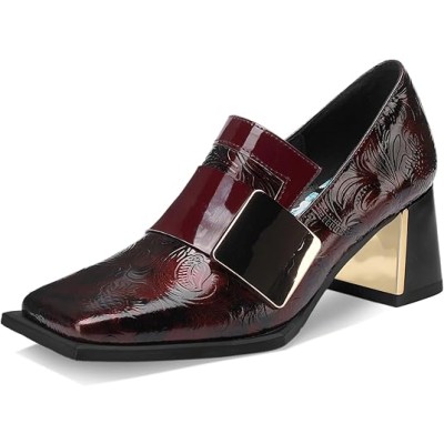 Loafers for Women Patent Leather Buckle Square Toe Chunky Block Dress Slip On Wide Casual Comfortable Dressy High Heels Ladies