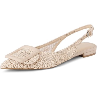 Woven Pattern Slingback Flats for Women Pointed Toe Square Buckle Comfortable Work Dress Shoes Black