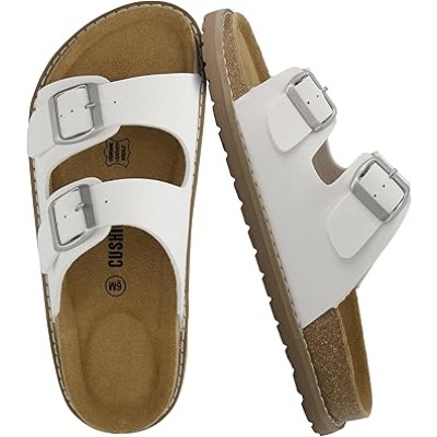 Plano Slip-On Sandals for Women 2025 with Arch Support, Adjustable Buckle Straps, and Stitched Outsole – Casual Flat Summer